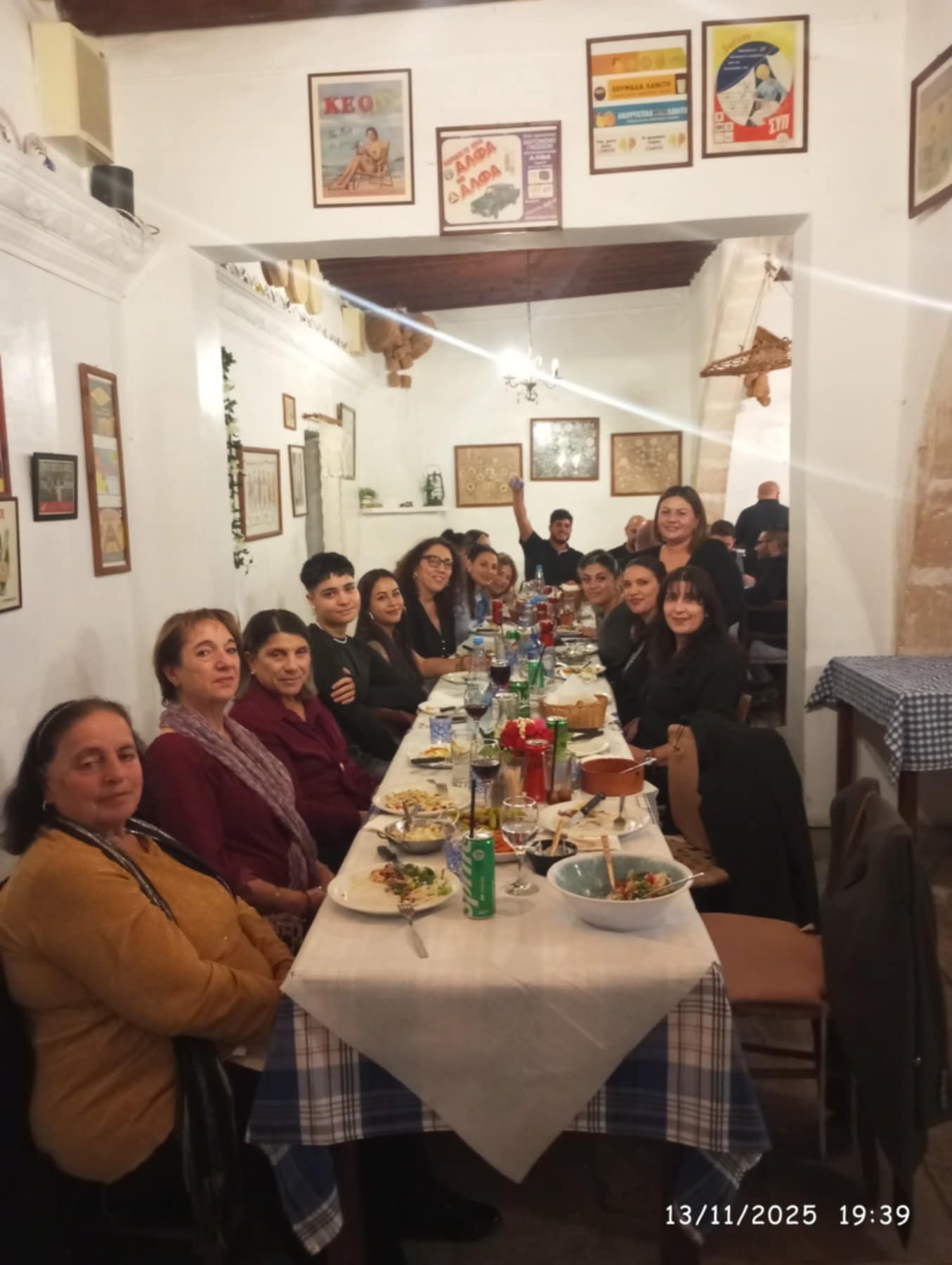 Στην πρώτη συνεστίαση της φετινής χρονιάς, που έγινε στις 13 Νοεμβρίου 2025, φοιτώντες και εκπαιδευτικοί βρέθηκαν σε μια χαλαρή ατμόσφαιρα, σε ταβέρνα στο χωριό Σωτήρα.